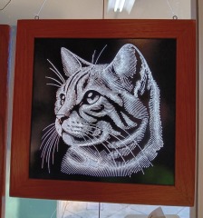This striking wall art is crafted from painted acrylic, precision-cut on a CNC machine to create intricate designs that catch and reflect light - especially when displayed in a window. Each piece is finished in a handcrafted frame made from salvaged hardwood flooring, giving new life to reclaimed materials. Thoughtfully designed and sustainably made, these pieces transform discarded materials into truly dazzling art. 11.25"x11.25" Ready to hang.